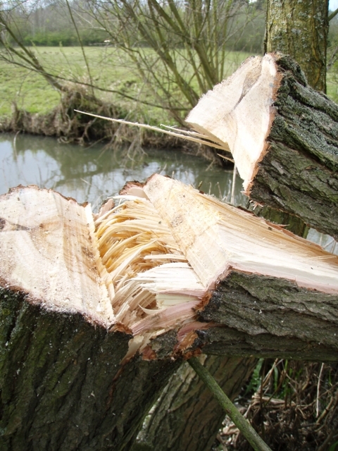 Nature usually provides a good supply of fallen trees to create woody debris and good barbel swims. In this case (below left), a willow has fallen into the river during a gale. This tree is just fine as it is, being firmly anchored to the bank and unlikely to move during floods. It is also alive and growing which helps to create new habitats for wildlife such as nesting birds.