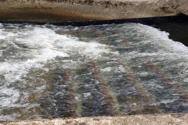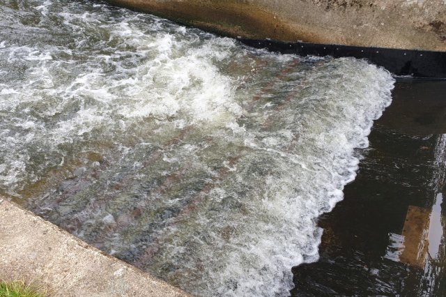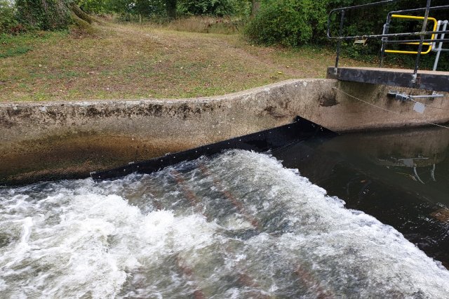Fitted eel pass on one side of the weir wall