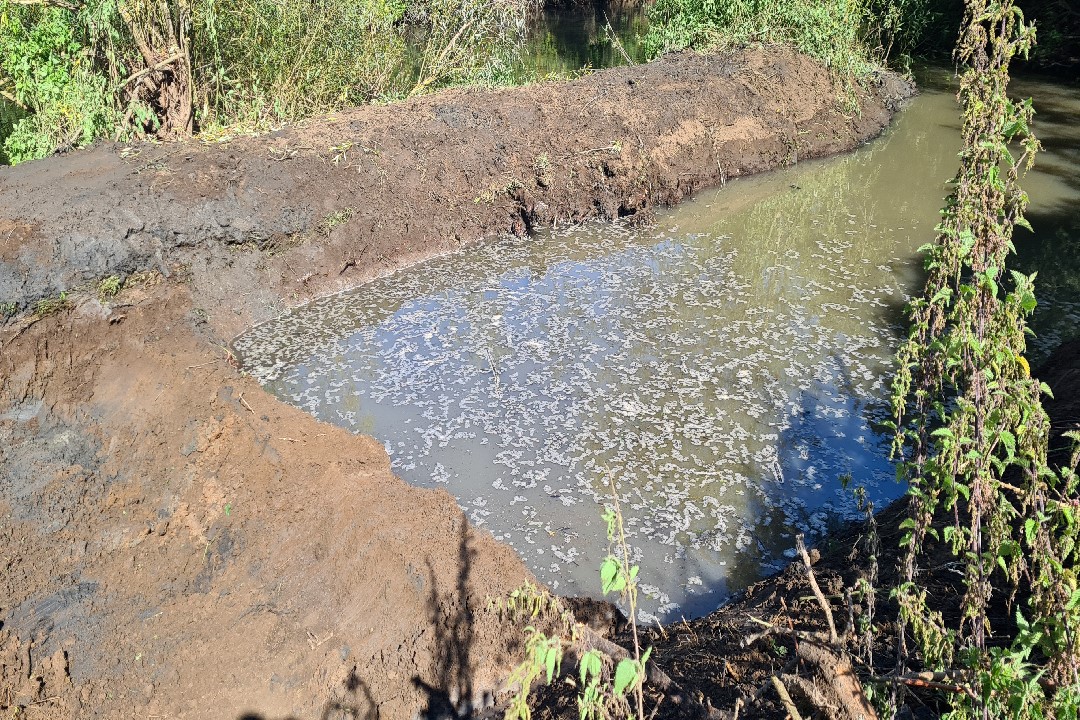 Accumulated silt which will be removed at the mouth of the backwater. This is before coomencemnt of works and at normal river levels.